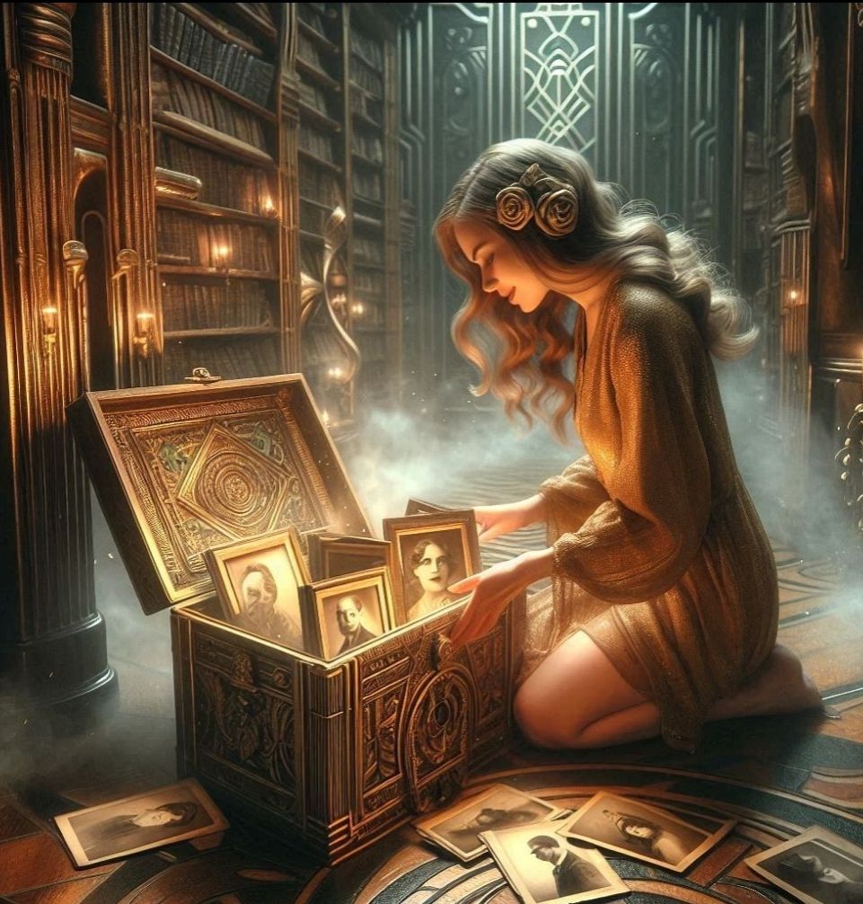 A woman finds herself in a dimly lit, eerie room with no memory of how she got there. As she explores, she discovers an ornate box filled with old photographs of people she doesn’t recognize but feels connected to. A haunting melody from a gramophone stirs her emotions, and she momentarily feels a link to her lost past. When a man appears in the doorway, she feels a surge of recognition and realizes she is exactly where she needs to be, despite her amnesia.